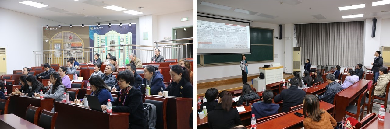顾晓英研究员作了题为“从‘大国方略’到‘人工智能’——上海大学课程思政的探索与成效”的报告。她首先介绍了所领衔的、从“大国方略”到“人工智能”系列通识课程的新思路、新做法,秉承“立德树人”的教育理念,采用思政课教师串联教学活动,专业课教师主讲教学内容的“项链模式”进行教学。她还介绍了上海大学以“课程思政”为目标进行的课堂教学改革,通过优化课程设置,修订专业教材,完善教学设计,加强教学管理,梳理各门专业课程所蕴含的思想政治教育元素和所承载的思想政治教育功能,融入课堂教学各环节,实现思想政治教育与知识体系教育的有机统一。报告结束后,与会教师和顾晓英研究员热烈探讨“课程思政”中的问题。