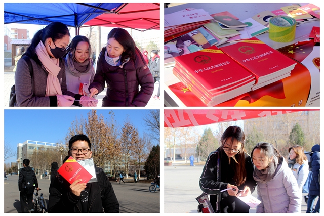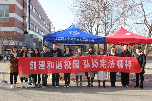 2018年12月4日是我国的第五个国家宪法日暨第十八个法制宣传日,为深入贯彻落实习近平新时代中国特色社会主义思想,树立宪法信仰,弘扬法治精神,米兰milan官方网站党委宣传部与法学院共同主办了“12·4国家宪法日”普法宣传活动。本次活动以“创建和谐校园,弘扬宪法精神”为主题,由法律援助中心、学生会权益部担任普法志愿者,在中关村和良乡两校区同时开展。