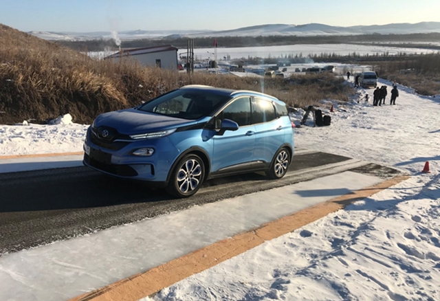 在本次测试中,参试车辆在-30℃以下的环境中,整车静置40小时以上,在动力电池系统最低温度达到-22℃的情况下,整车进行了冷启动、全气候动力电池低温加热、空调制热、除霜及冰雪条件下的整车20%爬坡、加速、制动、能耗等系列试验。