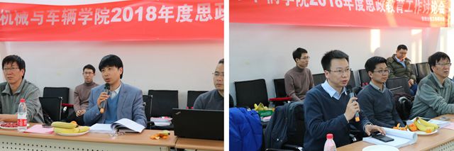 在交流讨论环节,责任教授、优秀班主任代表们根据各班级的实际情况进行了发言。2017级车辆工程2班班主任龚建伟表示,对学生要用心,对工作要上心,同时自己能够以身示范,用积极的工作态度感染和带动学生,在学业、科研等多方面给予学生及时的帮助。2016级装甲车辆工程2班班主任周俊杰分享了具有班级特色的班会制度。通过主题活动、兴趣小组分享、班级事务研讨三个模块,有效提高班会的效率和学生参与度,同时他强调要做好和学生的谈心谈话工作,保证一对一谈话,帮助每一位同学找到发展目标,制定发展规划。2015级机械工程4班班主任庞璐认为做好“一年级工程”各项工作以及对困难学生的帮扶是班主任非常重要的工作内容,通过经常性的走访宿舍以及和学生一起吃饭上自习,能够有效的促进和学生的交流。能源与动力工程专业责任教授张卫正表示应积极发挥专业导师作用,以机制促进工作,真正发挥育人实效。