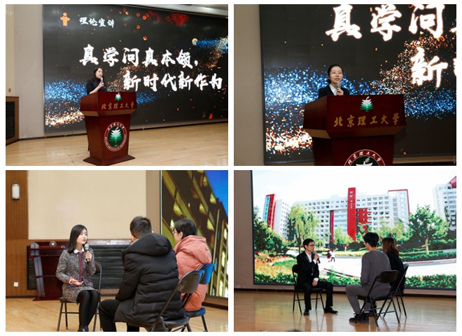 决赛分为谈心谈话和理论宣讲两个环节。谈心谈话环节中,参赛辅导员随机抽取与学生学习成长相关的问题,现场模拟为学生答疑解惑的情景,展现自身业务能力。理论宣讲环节中,10名辅导员分别围绕“爱国奋斗,砥砺前行”和“真学问真本领,新时代新作为”两大主题宣讲,展现自身理论素质以及理论指导实践的能力。