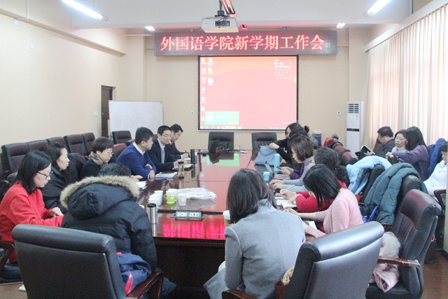 2月22日下午,外国语学院还召开了全体教师大会。李京廉总结了学院2018年的工作并介绍了2019年的工作重点,副院长姜爱红、张莱湘分别对新学期的学科、科研及教学工作做了布置,杨晖在总结时,要求学院教师同心同德,凝心聚力,把握机遇,迎接挑战,为创建与“双一流”大学相匹配的外语学院而继续努力。本次工作会议为新学期的学院工作指明了方向,鼓舞了士气,振奋了精神,为后续工作顺利的开展奠定了良好基础。