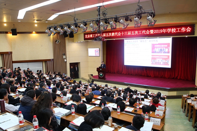 报告提出了2019年总体工作思路和工作部署。学校将以习近平新时代中国特色社会主义思想为指导,全面贯彻落实党的十九大和十九届二中、三中全会精神,落实全国教育大会精神,坚持新发展理念和高质量发展,以中国特色世界一流为核心,以内涵式发展为主线,稳中求进,全面深化综合改革,全面实现内涵提质,坚持立德树人、特色一流、改革驱动、师生为本。系统开展勇攀一流学科高峰、打造一流人才培养北理品牌、汇聚一流德教双馨米兰人、争做一流科技创新排头尖兵、创建一流开放国际合作社区、构建一流高效宜学宜居环境、加强党建和思想政治工作等7个方面主要工作,重点开展本科课堂教学质量提升工程、推进“智慧北理”建设、提升科学管理水平等3个专项工作,集中破解队伍建设、科技创新、资源配置等3方面难题,实现学科水平、国际合作、校园生态建设3方面提质和人才培养质量、可持续发展能力、师生感受3方面提升,推动学校“双一流”加快建设、特色建设、高质量建设。