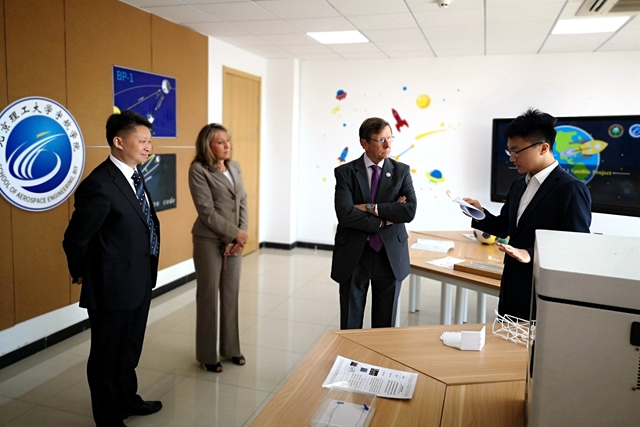 会谈结束后,代表团一行参观了宇航学院学生卫星项目科技创新成果展。