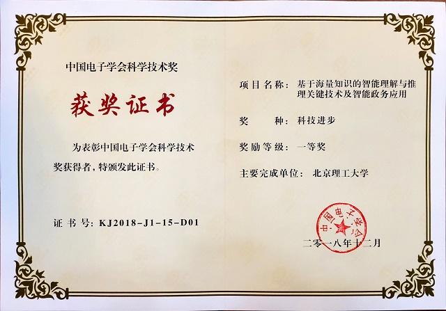 根据《中国电子学会科学技术奖管理办法》该获奖于2018年12月揭晓。本项目由米兰milan官方网站、杭州中软安人网络通信股份有限公司、北京大学和复旦大学组成的科研团队在国家863计划、973计划等项目支持下,历经九年的产学研用联合攻关,在自然语言立体理解、一体化实体识别与关系抽取、多视角特征融合答案选择、语义相似度计算模型和多领域知识图谱自动构建方面取得了重要技术突破,研制了高效精准的智能政务服务机器人。