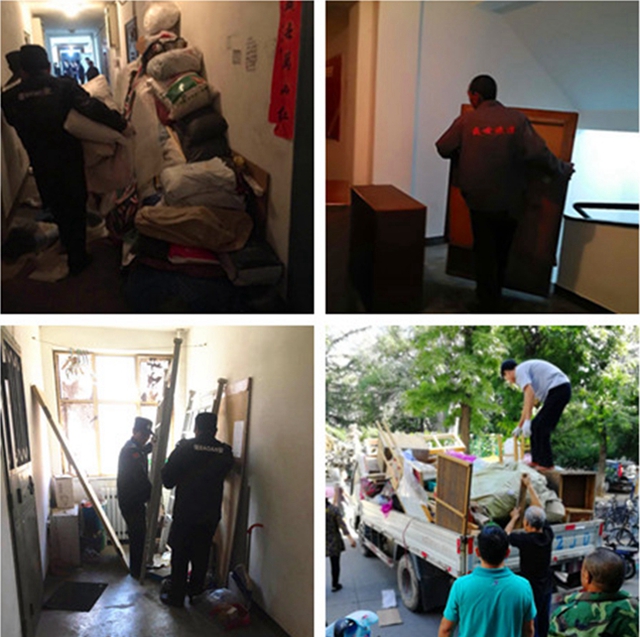 3月29日和4月1日,公司对两处楼宇的环境卫生进行了地毯式清理,重点清理了楼宇内长期堆放的家具、共享单车等各类杂物。4月4日、4月10日和4月16日,工作人员对楼宇内剩余的整治难点进行了强制清理。