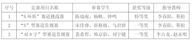 在总决赛中,我校学生在赛道比赛、小车拆装、3D打印以及现场答辩等环节中表现出色,克服了重重困难,沉着稳定地发挥了队伍水平。最终在“S环形”赛道挑战赛项目中首获特等奖,在“S”型赛道常规赛和“双8字”型赛道常规赛项目中均获一等奖,为我校及北京赛区赢得了荣誉。