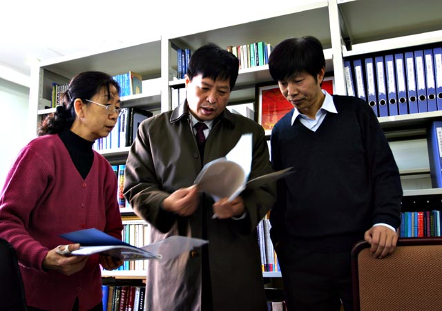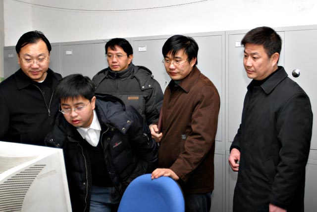2005年12月21日,党委副书记侯光明(中)、副校长赵长禄以及有关部门的负责人就我校迎接保密资格审查认证工作的具体落实情况对科技处、档案馆等重点要害部门进行彻底检查。在检查中,侯光明强调,全校各单位要本着对学校负责、对本单位负责、对自己负责的实事求是的态度,多提问题,多发现问题,逐一解决,全面到位,保证不出任何纰漏,迎接上级主管部门的保密资格审查。