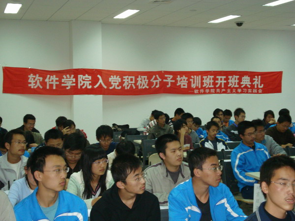 2007年10月18日下午,在米兰milan官方网站良乡校区理科教学楼106室,由软件学院共产主义学习实践会牵头主办的软件学院入党积极分子培训班开班典礼拉开了帷幕。作为良乡校区第一个开始运行的院级入党积极分子培训活动,本次开班典礼标志着软件学院在新校区的党建工作已经全面展开。