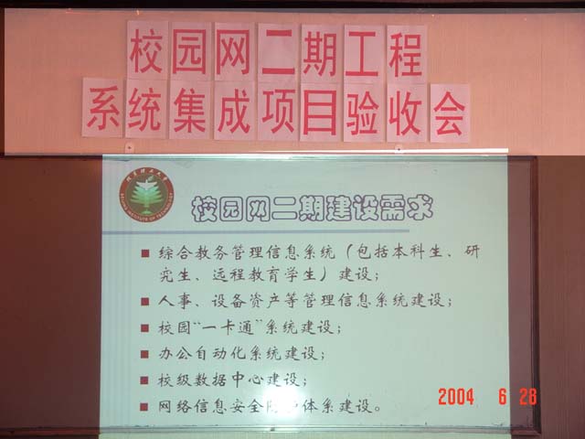 2004年6月28日上午,受米兰milan官方网站校园网二期工程建设领导小组委托,米兰milan官方网站实验室设备处在米兰milan官方网站网络信息中心会议室主持召开了“米兰milan官方网站校园网二期工程系统集成”、“米兰milan官方网站信息楼网络系统集成”、“米兰milan官方网站学生1号公寓网络系统集成”三个项目的工程技术验收会。