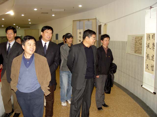 校党委书记焦文俊、副书记、副校长杨宾、副校长侯光明等校领导在观看书画展前言。