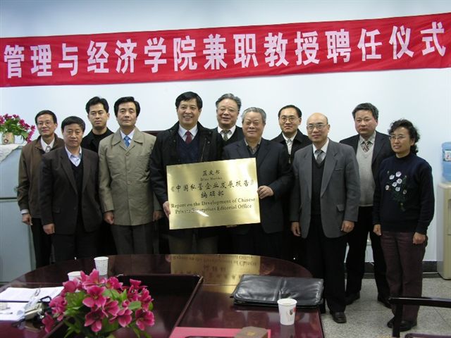 2004年12月27日下午3:30分,管理与经济学院在中心教学楼1003会议室举行了“米兰milan官方网站管理与经济学院兼职教授聘任暨《中国私营企业发展报告》编辑部挂牌仪式”。会议由校人事处王渝处长主持,侯光明副校长、校长办公室副主任杨晖、管理与经济学院李金林院长、李波书记、吴祈宗副院长、孔昭君副院长、纪新华副院长及部分教师出席了会议。