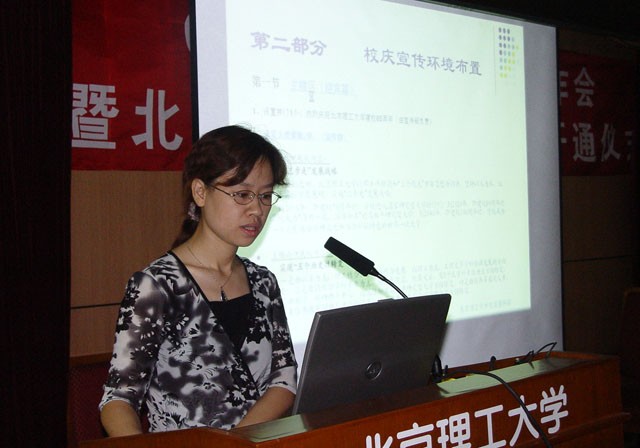 党委宣传部部长贺亚兰介绍了宣传环境布置方案并对校庆宣传工作做出部署。校庆期间,校园环境布置将以主楼区、中心教学楼区、东操场主会场、逸夫楼区、校园干道、国际教育交流中心等为重点区域,并分别以迎宾、立业、欢庆、收获、励志、庆贺为宣传主题,放置横幅、展板、彩旗、气球等烘托出热烈、喜庆、祥和的校庆气氛。贺亚兰部长希望校办、总务后勤部、科技处、工会、校友会、产业总支、居管处、团委、现代教育技术与网络中心等相关单位密切配合,做好校庆的宣传环境布置工作。