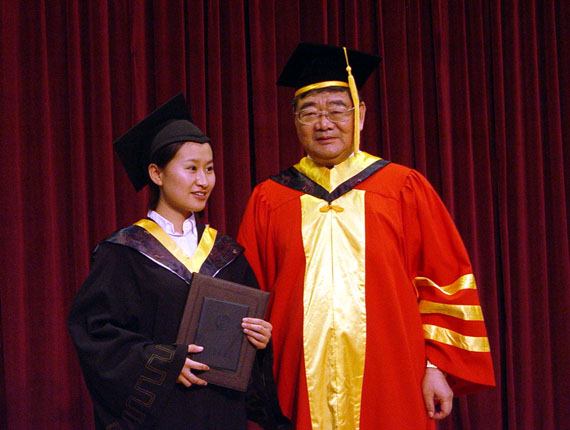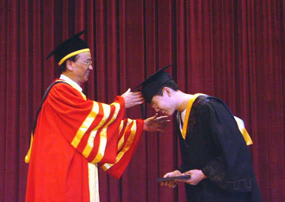 校长匡镜明教授在为毕业生授予学位