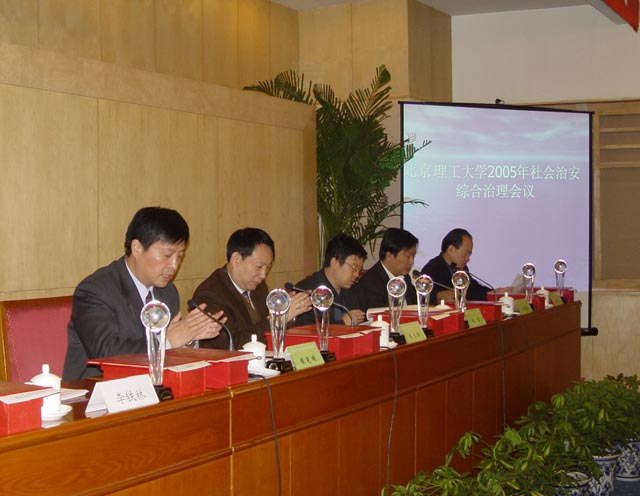 校综治委主任、常务副校长李志祥同志就如何实现2005年综治工作目标,作了重要讲话。李校长强调解决综治工作中的问题,一是要立足建设,做好保卫工作是解决学校存在问题的关键,安全第一促发展,履行职责齐抓共管,务实求真服务师生;二是要以保持共产党员先进性教育活动为契机,在综治工作中强调党员、党组织的作用,提升综治工作的水平;三是要认真学习中央提出的综治工作的内涵,即:坚持打、防结合,预防为主。我们要充分理解,积极落实综治工作的各项措施。近几年学校处于高发展期,同时也处于发展的高不平衡期,综治工作作为建设和谐学校的一项措施,一定要谨慎从事,千万不可大意;四是要与时俱进,创新工作,同时又要发扬传统精神,充分发挥延安精神并结合我校特有的国防特色,为培养高知识、高水平、高能力的大学生,做好2005年的综治工作。