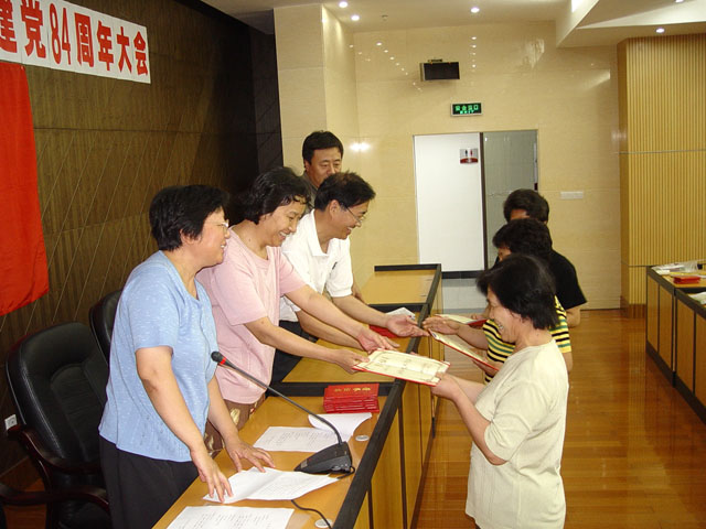 直属单位党委书记张民生同志代表党委做了发言,分别就纪念建党84周年和对党员先进性教育活动进行了总结讲话,并对在“三个代表”重要思想指导下,在加强党建和思想政治工作中涌现出的先进党支部和优秀共产党员的事迹进行了表彰。