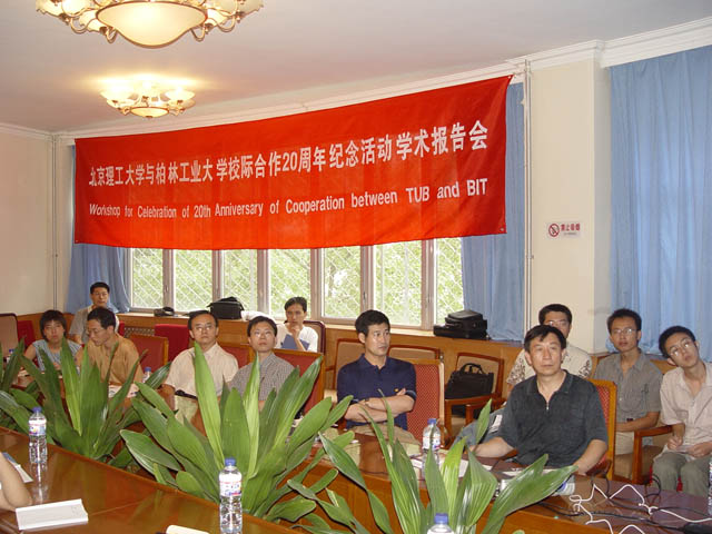 TUB代表团成员在进行通讯主题的学术报告会,我校校长匡镜明教授主持会议。