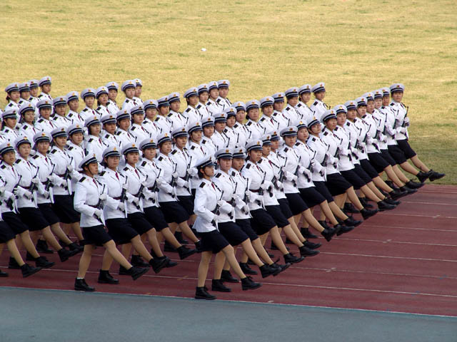 来自首都各高校、军事院校、部队的数万名观众参加了庆祝大会。