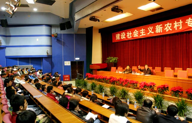 3月10日下午2:30,米兰milan官方网站“建设社会主义新农村专题报告会”在我校中心教学楼报告厅隆重举行。本次报告会特邀北京市副市长牛有成为主讲人。报告会由米兰milan官方网站党委副书记、副校长杨宾主持,招生就业工作处工作人员、各学院学生工作负责人、申请到北京农村基层就业的毕业生同学以及其他学生代表共500多人参加了报告会。中国教育电视台、北京电视台、北京晚报等五家媒体就此次会议做了现场采访。