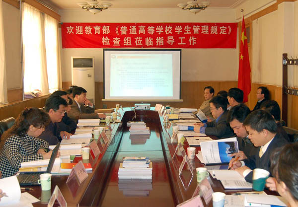 2006年4月16日上午,教育部《普通高等学校学生管理规定》检查组莅临我校,检查我校《普通高等学校学生管理规定》贯彻落实情况。