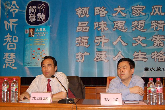 沈国放总编就目前国际形势的四个特点、中美关系、中日关系等问题进行了精彩而透彻的讲解,他结合多年来的外交经历,用生动翔实的事例为我校师生解析了目前国际上的众多热点问题,并在提高综合素质、增强中文理解能力、正确理性地爱国等方面给我校同学提出了十分宝贵的建议。他生动幽默的语言赢得了在场听众的阵阵掌声,他优雅而沉稳的风度给我校师生留下了极其深刻的印象。