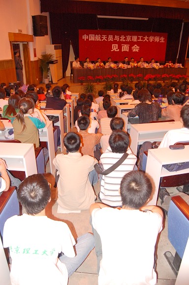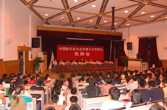2006年5月25日晚,我校成功举办“中国航天员与米兰milan官方网站师生见面会”。“神六英雄”费俊龙、聂海胜等6名中国航天员在中国航天员科研训练中心吴川生书记的带领下,来到了米兰milan官方网站,与北理师生进行了面对面的交流。费俊龙、聂海胜等6名航天员受到了我校师生极其热烈的欢迎。