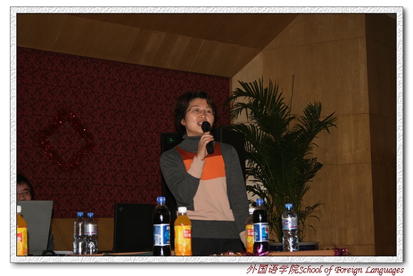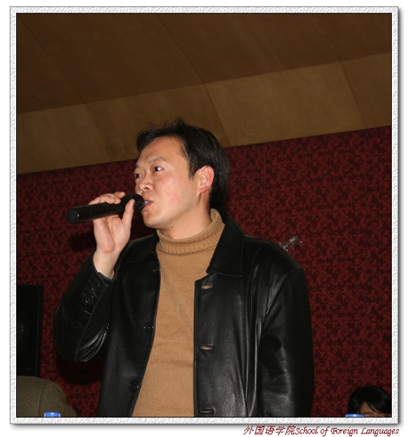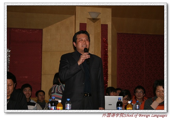 外国语学院院长吴树敬老师用诙谐幽默的语言,给出了英文中“忘年会”的定义,获得了在场日语专业师生的一直认可。