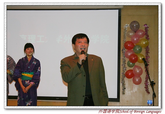 校党委副书记侯光明老师用日语带来了新年问候,侯书记流畅的日语表达赢得了在场所有师生的喝彩。