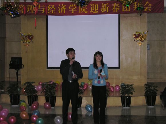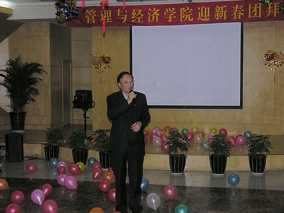 2007年1月16日,管理与经济学院迎新春团拜会在国交多功能厅隆重举行,全院教师欢聚一堂,其乐融融。校长匡镜明,副书记、副校长杨宾,副书记侯光明、赵平,副校长孙逢春、赵显利以及学校各部、处领导出席了迎新团拜会。