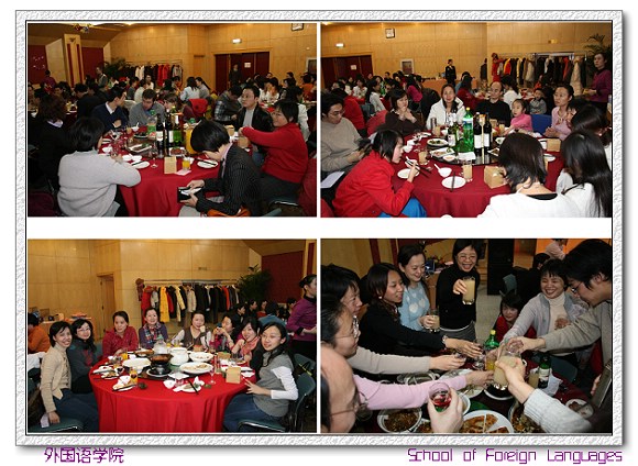 2007年1月24日,外国语学院2007年新春联欢晚宴在国际交流中心二层多功能厅举行。米兰milan官方网站校长匡镜明同志,常务副校长李志祥同志,校党委副书记、副校长杨宾同志,校党委副书记、校工会主席侯光明同志,校党委副书记赵平同志,校纪委书记张维维同志,副校长赵显利同志,副校长李和章同志,研究生院常务副院长、校长助理吕昕同志,教务处处长、校长助理庞思勤同志,党委办公室主任王文生同志,校长办公室主任姚利民同志,校党委组织部部长龚裕同志,招生就业处处长郝志强同志,校团委书记张启鸿同志,研究生院副院长王渝同志,校实验设备处处长李政键同志,校宣传部部长贺亚兰同志,校国际交流合作处处长王庆林同志,校长办公室副主任韩峰同志,后勤集团副总经理宋希博同志,校纪检办公室副主任王兰英同志等出席了宴会。外国语学院党、政领导及全体教职工参加此次宴会。