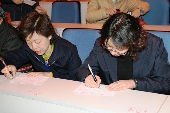我院全体正式党员认真填写了手中的选票,并有秩序的投出了手中庄严的一票。投票过程结束,在清点选票数量无误后,监票小组离场计票。