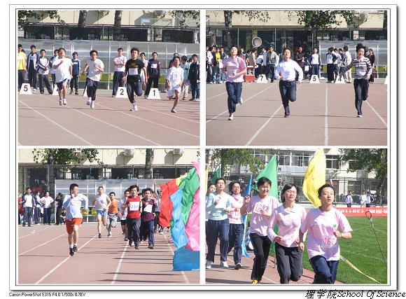 男子110米栏的比赛让我们目睹了“理院刘翔”的风采,新的记录见证了我们的进步。欢笑中,趣味接力为本次运动会画上了圆满的句号。