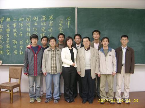 报告开始前,张教授满怀豪情的在黑板上写下并朗诵了《七律•学友聚会述怀》,以此来表达自己和学友对国防事业的热爱并激励同学们投身国防,为国防事业做贡献。
