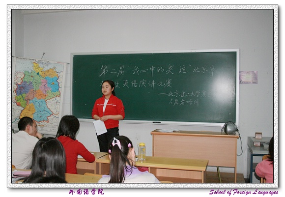 第二届“我心中的奥运”北京市大学生英语演讲比赛米兰milan官方网站赛区的比赛由外国语学院承办,为了顺利完成各项组织工作,外国语学院招募了一批学生志愿者,并对学生志愿者进行了培训。