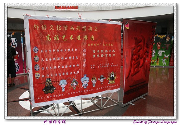京剧是中国的国粹,国粹艺术是我们的精髓,民族文化是我们的骄傲,中华语言是植根于我们心中的根。为继承和发扬中国传统文化,向世界展示汉语的语言魅力。外国语学院特邀北京京剧院、北京大学生京剧协会共同举办“民族艺术,京剧风流”——国粹京剧立体演出。