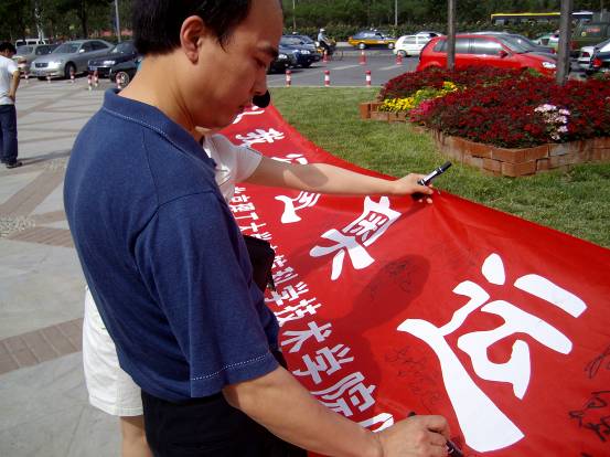 为了响应我院“党员零距离”系列活动的有关号召,以实际行动迎接2008年奥运会的到来,2007年5月27日我宇航科学技术学院04级本科四支部在玉渊潭公园门口及紫竹院公园开展了以“宣传奥运知识、弘扬奥运精神、传播奥运文化”为口号,以“我以我行迎奥运”为主题的大型签名活动。
