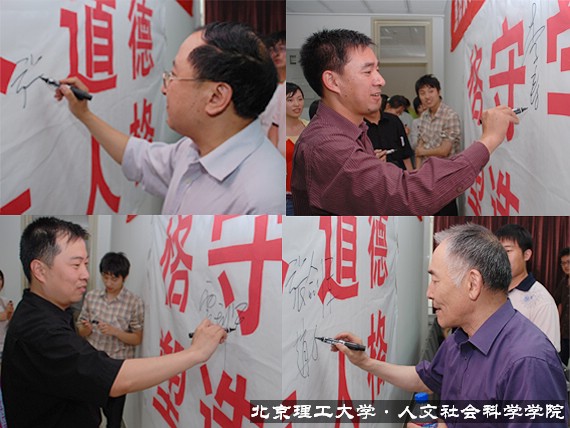 学术道德是每一位从事学术活动的人都应该遵守的基本活动准则。6月1日下午,首届人文学院研究生学术论坛闭幕式结束以后,我们举行了以“恪守学术道德、塑造诚信人格”为主题的学术道德自律签名活动,参加闭幕式的老师和同学一起积极参与了这次活动。