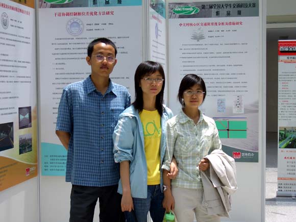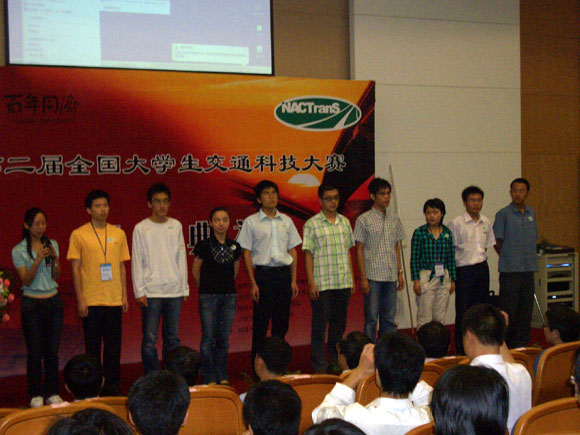 在赵亚男老师的带领下,交通工程系四位同学2007年05月24日出发,到上海参加决赛。2007年05月26日进行决赛,宋素娟、魏贺两位同学在赛场上展示米兰milan官方网站的作品,并进行答辩。2007年05月27日上午举行颁奖典礼,魏贺同学代表米兰milan官方网站参赛队上台领奖,并预祝2008年将在四川省成都市西南交通大学举办的第三届全国大学生交通科技大赛圆满成功。