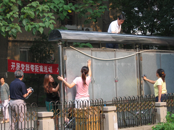 2007年7月5日下午四点,后勤集团党委组织集团全体党员和入党积极分子,开展“党群零距离”系列活动之一——义务劳动。本次劳动分两个“战场”,一个是清理家属区环境,一个是清扫新食堂卫生。为搞好此次活动,集团党委从劳动任务的分工,到劳动工具、饮水、宣传等方面工作都做了充分的准备。集团所属党政领导以普通党员的身份和150余名党员和积极分子一起,冒着酷暑,积极参加了此次党日活动。