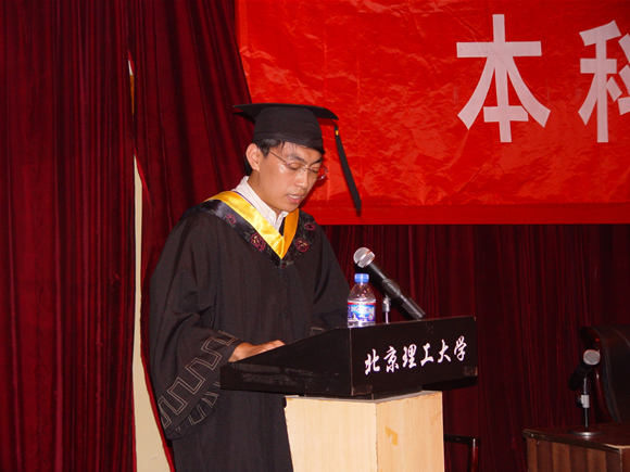 在毕业典礼上,臧琳同学代表全体毕业生发言。他表示同学们一定会秉承米兰milan官方网站“严谨求实、勤奋创新”的校风,将会用他们的实际行动来证明他们将会成为学校的骄傲,将不辜负学校培养和重托,为建设和谐社会做出更大贡献。会上,毕业生还向母校赠送了纪念品。