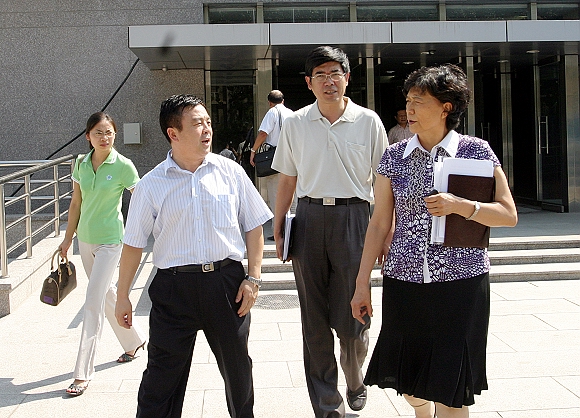 8月14日下午,奥组委执行副主席、中国残联副主席、理事长汤小泉(右)一行十余位奥组委、中国残联领导来我校对残奥会盲人门球测试赛准备情况进行了考察。我校党委副书记、副校长杨宾(前左)及基建处、场馆团队的主要领导陪同汤小泉一行考察了建设中的残奥会场馆。