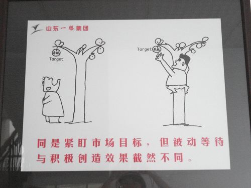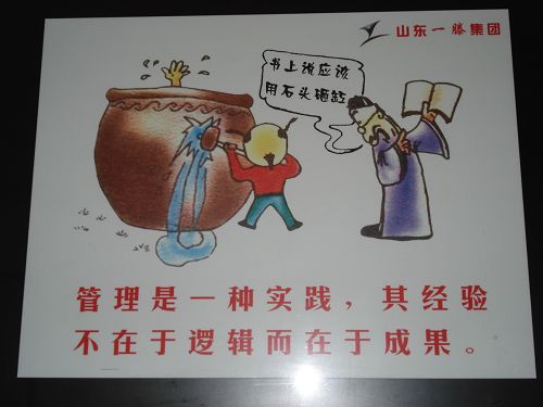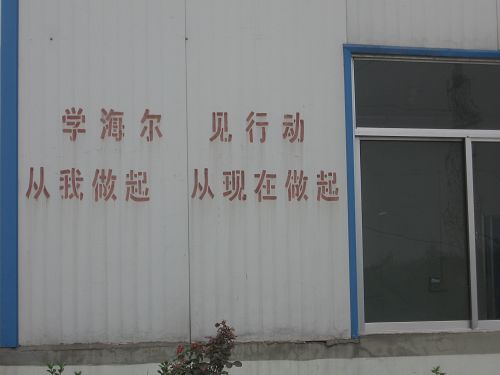 在这里,同学们看到了这样一则标语“学海尔 见行动 从我做起 从现在做起”,同学们感慨颇深,看到了一个有勇气、有魄力、有远见的民营企业。