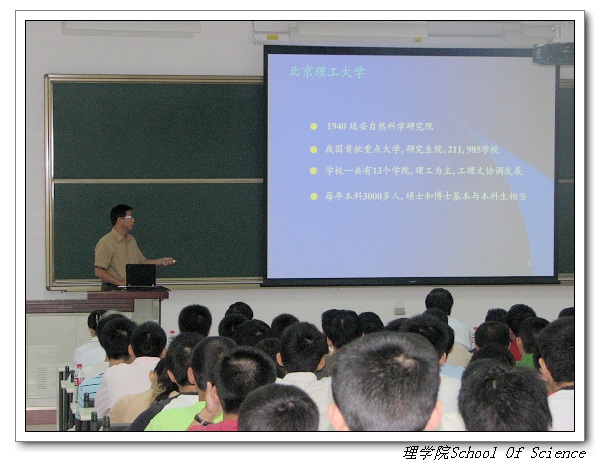 院长胡更开向大家介绍了理学院的整体情况,包括理学院本科生的培养理念与培养方向,理学院的师资力量以及最近理学院各学科科研上取得的一系列成果等,使在座的各位同学深受鼓舞。