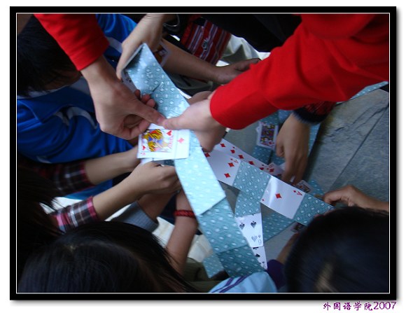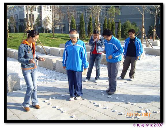值得一提的是,负责组织这次素质拓展训练的均是2007级外国语学院的新生同学们,12个小姑娘用高度的责任心和细致的准备,为此次素质拓展活动的顺利进行作出了很大的贡献。