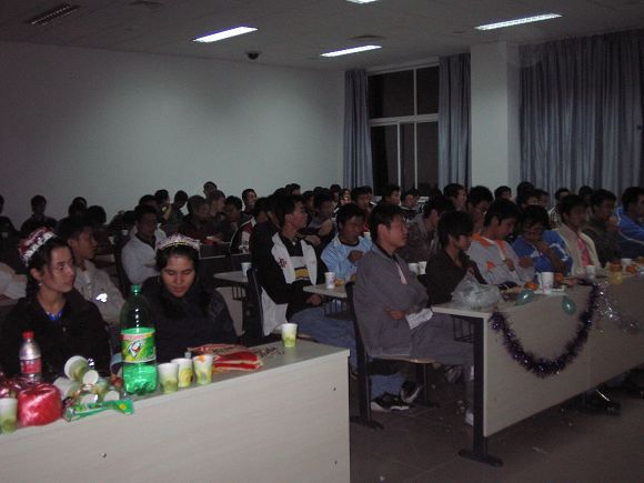 节目之余,各个会场更是设计了很多大家互动的游戏。有了那种和谐而温暖的气氛,大家都踊跃地参加到游戏中来:大西瓜小西瓜,气球接力,抢凳子,折报纸,苹果钓鱼……同学们都玩得激情四溢,不知不觉中,那种家的感觉洋溢在整个会场,三院一家人,相亲相爱的一家人!