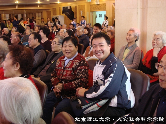 九点三十分,庆祝活动正式开始,同学们陪同老人们共同观看团市委准备的节目,在观看过程中,志愿者们还对老人没有看懂听懂的部分,根据老人自己的需要进行了耐心的讲解,在与老人攀谈中也能自觉运用无条件尊重、积极关注、认真倾听、及共情等专业会谈技巧。