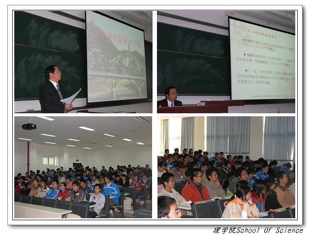 2007年11月2日,理学院党委书记何明老师在良乡校区理科教学楼302,给2007级全体新生讲授了第一次党课。