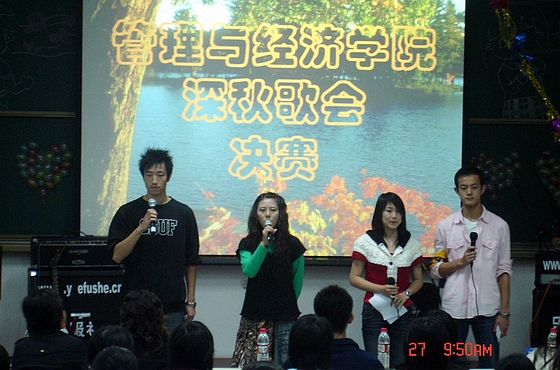 2007年10月27日上午9:30分管理与经济学院深秋歌会复赛在同学们的期盼中如期举行。