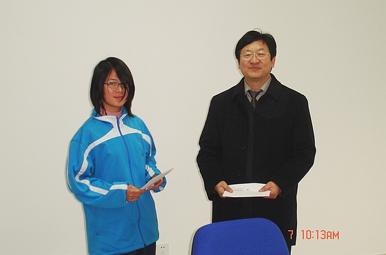 仪式开始,管理与经济学院2007级辅导员荣磊老师首先介绍了出席此次仪式的院系领导,然后简要介绍了获得助学金的同学们的个人情况。