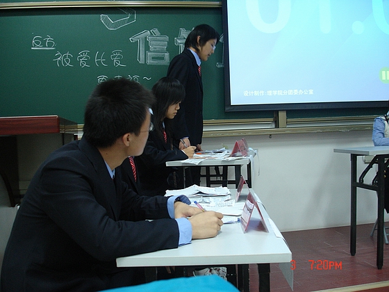 11月3日,会计与信管一班就“爱与被爱哪个更幸福”这个辩题在良乡校区理科教学楼206进行了一场激烈的辩论赛。正方会计班的辩题是“爱比被爱更幸福”,反方信管一班的辩题是“被爱比爱更幸福”。辩论会在最初的立论阶段就火花四溅,经过第二轮攻辩的加温,在自由辩论阶段达到高潮,双方激烈交锋,互不相让。随后双方四辩又作了沉稳而精彩的总结陈词,使辩论会的辩论阶段很好的结束了。经过评委老师的仔细商讨,最终正方获得了辩论赛的胜利,反方二辩获得了当场最佳辩手的称号。